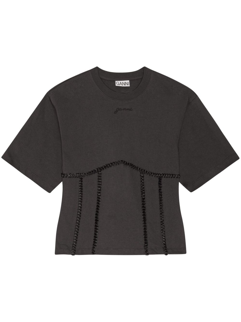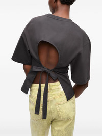 applique-detail T-shirt Highlights - Black - Rear bow fastening - Embroidered logo at the chest - Short sleeves - Open back Imported Composition Fabric 100%