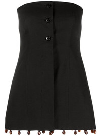 beaded-hem strapless top Highlights - Black - Organic cotton - Strapless - Front button fastening - Bead detailing Imported Composition Outer: Organic Cotton 100% Lining: Polyester 100% SIZE & FIT Model measurements Height 5 ft 10 in(1.77 m) Bust/Chest 32.67 in(83 cm) Hips 35.43 in(90 cm) Waist 23.62 in(60 cm) FittingInformation Designed for a slim fit that sits just away from the body offering a close yet comfortable fit Made from a midweight non-stretch fabric This piece fits true to size – take your usual size