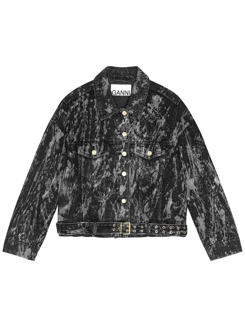 belted denim jacket Highlights - Black - Organic cotton - Denim - Front button fastening - Bleach wash - Classic collar - Seam detailing - Chest flap pockets - Long sleeves - Belted waist Imported Composition Organic Cotton 100%