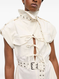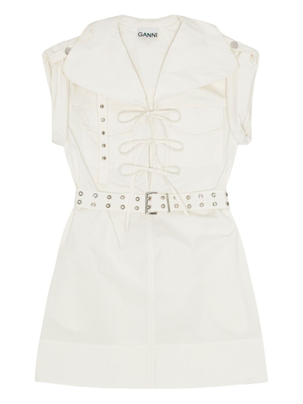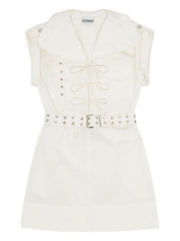 belted dress Highlights - White - Front lace-up fastening - Two chest flap pockets - Oversized pointed collar - Short sleeves Imported Composition Fabric 100%