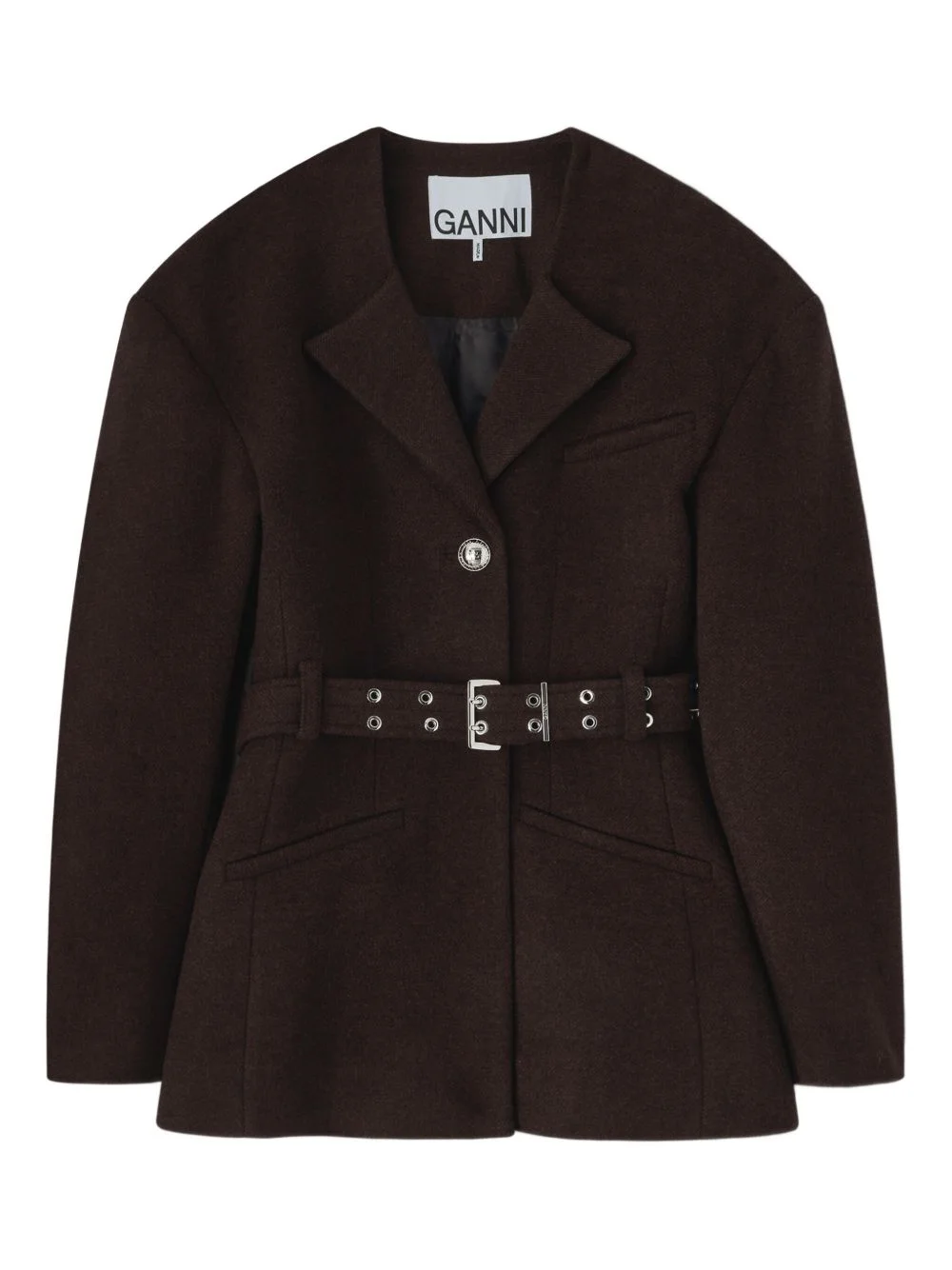 belted single-breasted jacket Highlights - Dark brown - Single breasted - Belt - Button fastening - Welt pockets Imported Composition Fabric 100% Washing instructions Read Manufacturer Guidelines