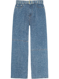 belted wide-leg jeans Highlights - Blue - Front button and zip fastening - Belt loops - Classic five pockets Imported Composition Fabric 100% SIZE & FIT Measurement FRONT RISE 12.99 in(33 cm) HIPS 42.51 in(108 cm) WAIST 34.64 in(88 cm)