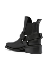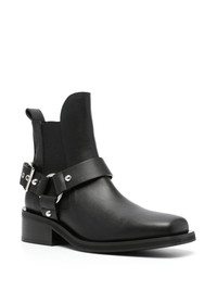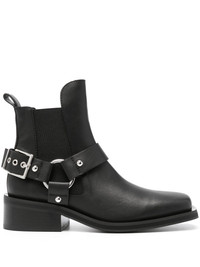 biker Chelsea ankle boots These biker boots by Ganni are crafted in Portugal from a recycled leather blend. Designed with a low-cut profile and set on a low block heel, their square-toed silhouette is completed with polished silver-tone hardware. Highlights - Black - Faux leather - Square toe - Decorative buckle detailing - Elasticated side panels - Pull-tab at the heel - Ankle-length - Branded insole - Faux-leather lining - Silver-tone hardware - Low block heel - Rubber outsole - Slip-on style - This piece comes complete with a protective dust bag. Imported Composition Outer: Rubber 100% Lining: Rubber 100% Sole: Rubber 100% SIZE & FIT Measurement CIRCUMFERENCE 7.87 in(20 cm) HEEL 2.16 in(5.5 cm) HEIGHT 4.72 in(12 cm) Sole height 0.78 in(2 cm)