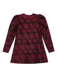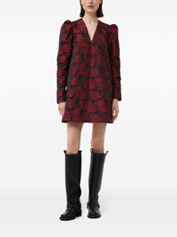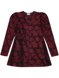 botanical-print jacquard long-sleeve minidress Highlights - Black/red - Recycled polyester blend - Full jacquard - Botanical print - V-neck - Long sleeves - Straight hem - Thigh-length Imported Composition Recycled Polyester 50%, Polyester 50%