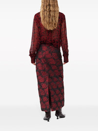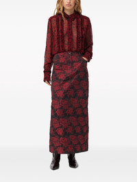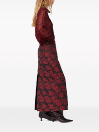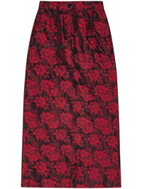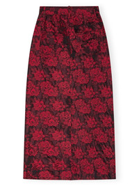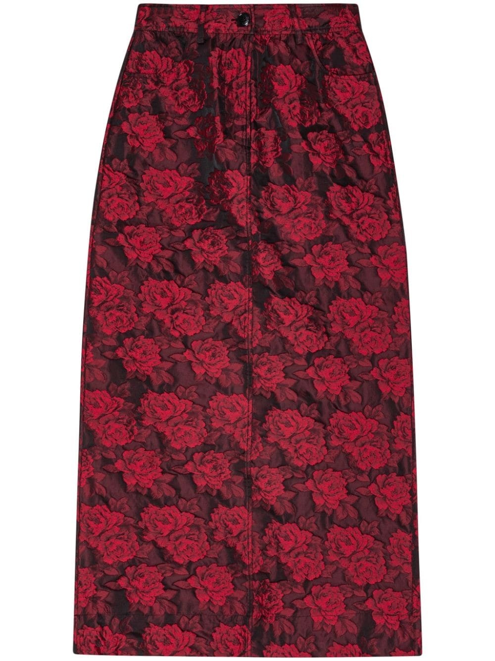 botanical-print jacquard maxi skirt Highlights - Black/red - Recycled polyester blend - Full jacquard - Botanical print - Front button and zip fastening - Two rear patch pockets - Rear slit - Mid-length Imported Composition Recycled Polyester 50%, Polyester 50% Washing instructions Read Manufacturer Guidelines