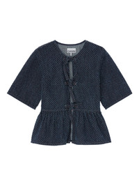 bow peplum top Highlights - Dark blue - Textured finish - Bow detail - Short sleeves - Peplum hem - Round neck Imported Composition Fabric 100% Washing instructions Read Manufacturer Guidelines