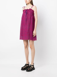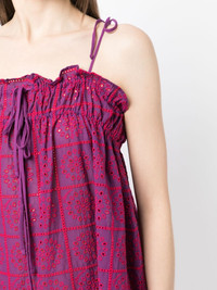 Broderie-Anglaise strap dress Cut to a relaxed silhouette, this Broderie-Anglaise dress from Ganni pairs grape purple and red hues with a floaty skirt for a playful look. Highlights - Grape purple/red - Organic cotton - Broderie anglaise - Square neck - Tie-fastening straps - Thigh-length Imported Composition Body: Organic Cotton 100% SIZE & FIT Model measurements Height 5 ft 10 in(1.78 m) Bust/Chest 30.31 in(77 cm) Hips 34.64 in(88 cm) Waist 24.01 in(61 cm) FittingInformation Designed to be unstructured, offering a loose fit throughout The adjustable drawstring means that you can adjust this piece’s fit to suit your comfort and preference Made from a midweight non-stretch fabric This piece fits true to size – take your usual size Washing instructions Machine Wash