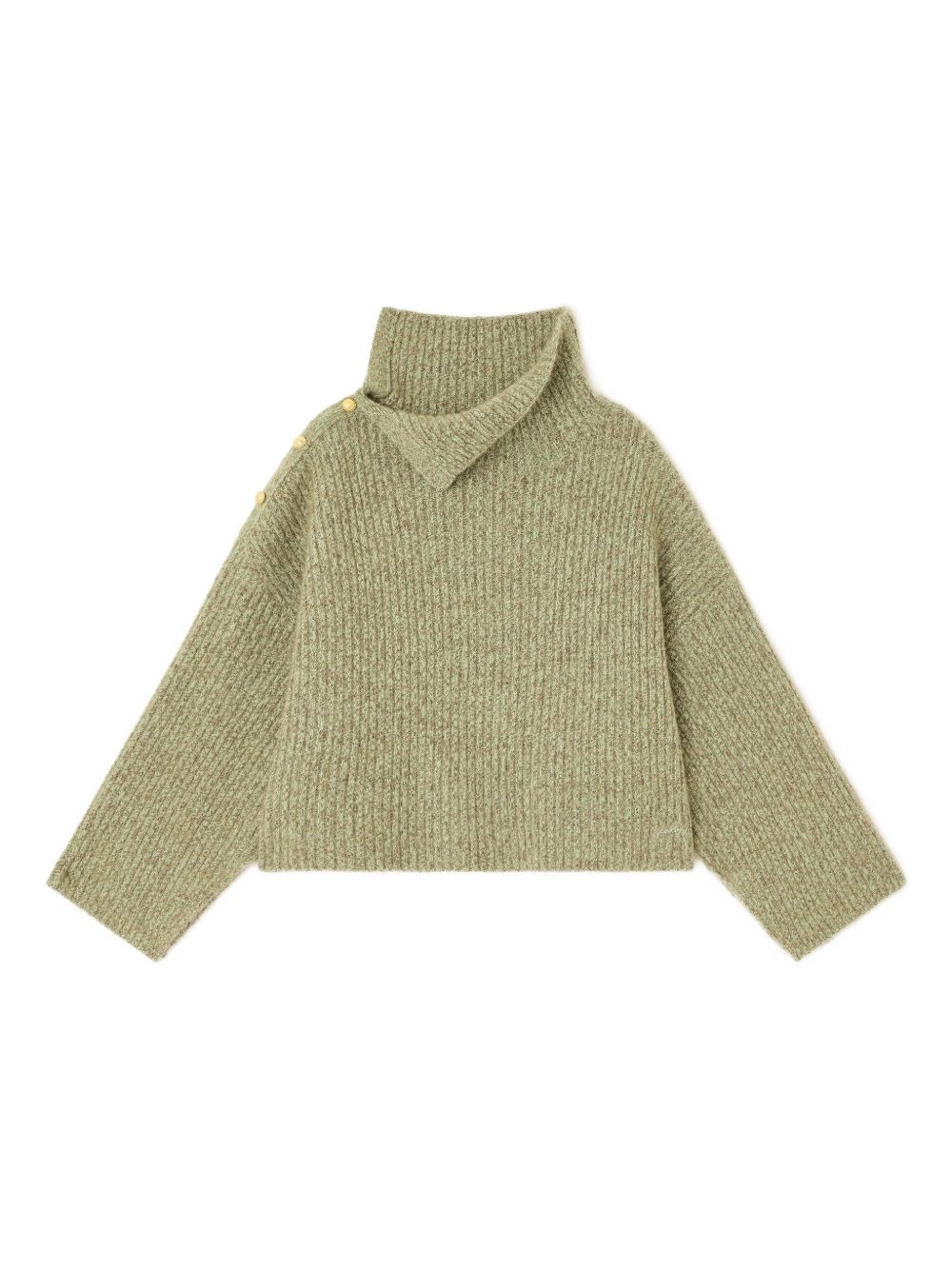 brushed sweater Highlights - Green - Ribbed knit - Asymmetric neckline - Wide sleeves Imported Composition Wool 39%, Mohair 30%, Recycled Polyester 29%, Elastane 2% Washing instructions Read Manufacturer Guidelines