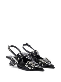 buckle eyelet pumps Highlights - Black - Buckle detailing - Eyelet detailing - Slingback strap - Pointed toe - Kitten heel Imported Composition Outer: Calf Leather 100% Lining: Calf Leather 100% Sole: Calf Leather 100%