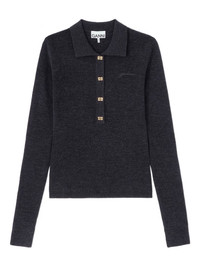 buttoned collar polo shirt Highlights - Grey - Collar - Front button fastening - Long sleeves - Chest logo detail - Ribbed knit Imported Composition Fabric 100% Washing instructions Read Manufacturer Guidelines