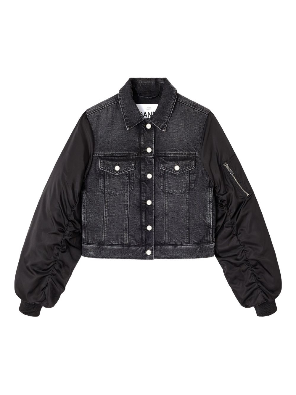 buttoned denim jacket Highlights - Black - Denim panels - Front button fastening - Chest flap pockets - Long sleeves - Zip detail Made in Italy Composition Organic Cotton 80%, Recycled Cotton 20%