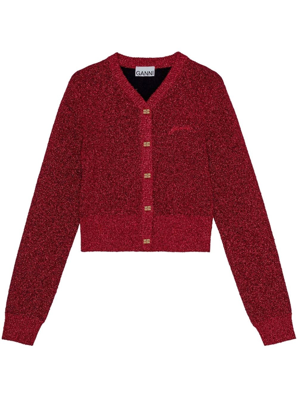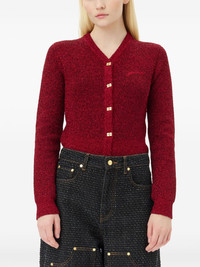 buttoned long sleeve cardigan Highlights - Red - Ribbed knit - Button fastening - Long sleeves - Embroidered logo at the chest - Ribbed cuffs and hem Made in Italy Composition Wool 38%, Metallized Polyester 34%, Recycled Polyester 25%, Polyamide 3% Washing instructions Read Manufacturer Guidelines