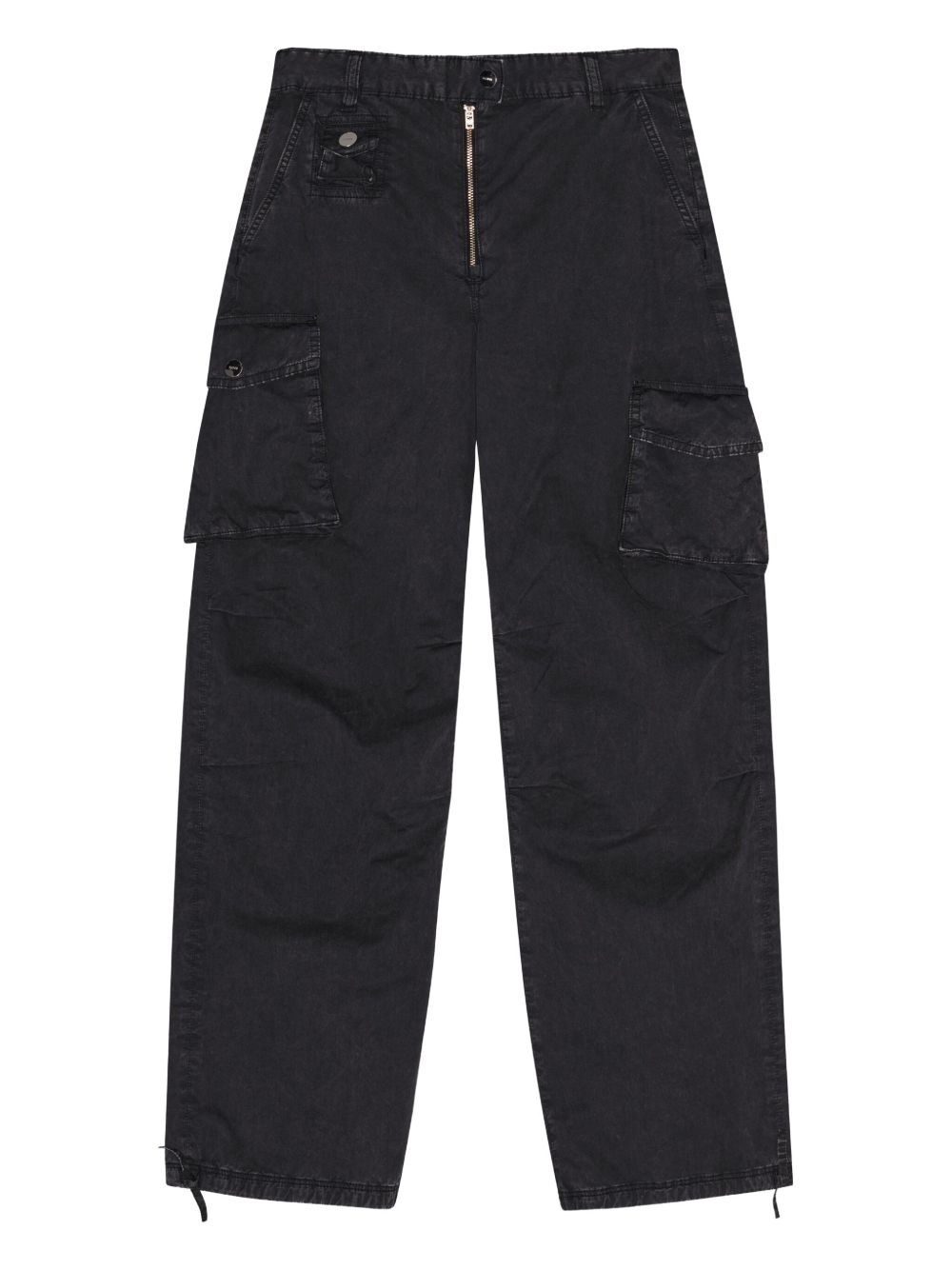 cargo trousers Highlights - Black - Front button and zip fastening - Two side slash pockets - Multiple cargo pockets - Two rear flap pockets Imported Composition Fabric 100%