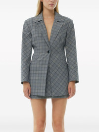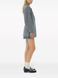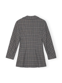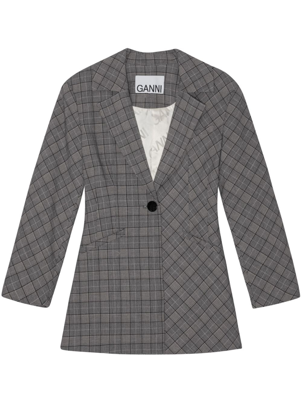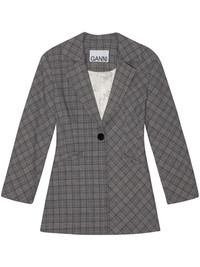 Check Mix single-breasted blazer GANNI offers a deconstructed rendition of the classic single-breasted blazer. This garment is characterised by a mixed check print that speaks to the Scandinavian brand's irreverent spirit. Highlights - Grey - Recycled polyester blend - Mix check print - Pleat detailing - Notched lapels - Long sleeves - Front button fastening - Straight hem Imported Composition Recycled Polyester 61%, Viscose 25%, Wool 10%, Elastane 4%