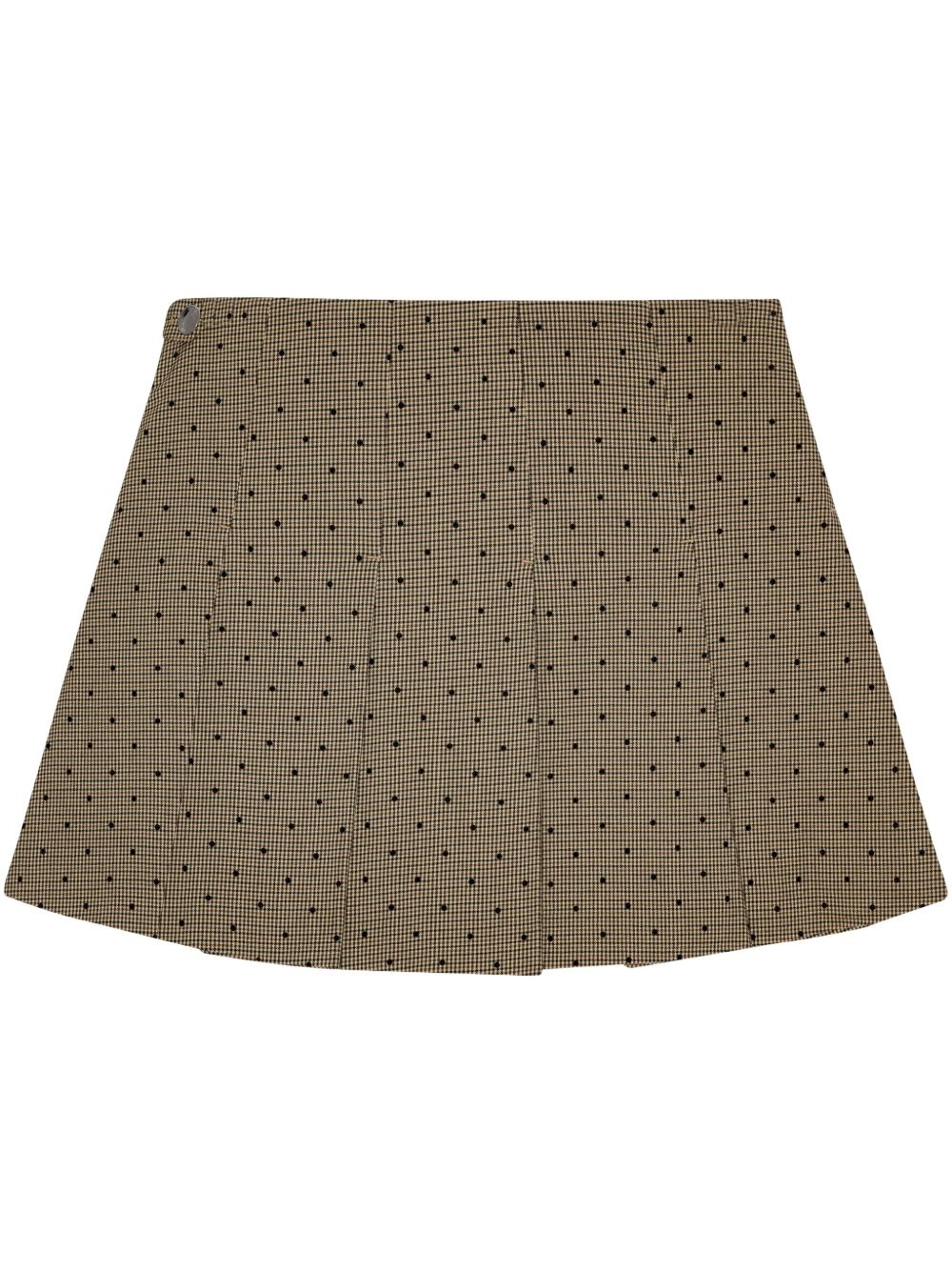 BROWN FLOCK CHECK SUITING MINI SKIRT