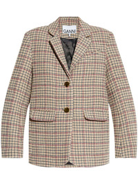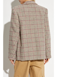 checked blazer Highlights - Beige/black/bordeaux red - Recycled wool blend - Houndstooth pattern - Front button fastening - Gold-tone buttons - Notched lapels - Long sleeves - Chest welt pocket - Two front flap pockets - English rear vents - Full lining Imported Composition Outer: Recycled Wool 50%, Recycled Polyester 40%, Nylon 5%, Viscose 5% Lining: Recycled Polyester 100% SIZE & FIT FittingInformation Designed for a relaxed fit, this piece allows for comfort and movement when worn The internal shoulder pads offer a structured shape Made from a midweight non-stretch fabric