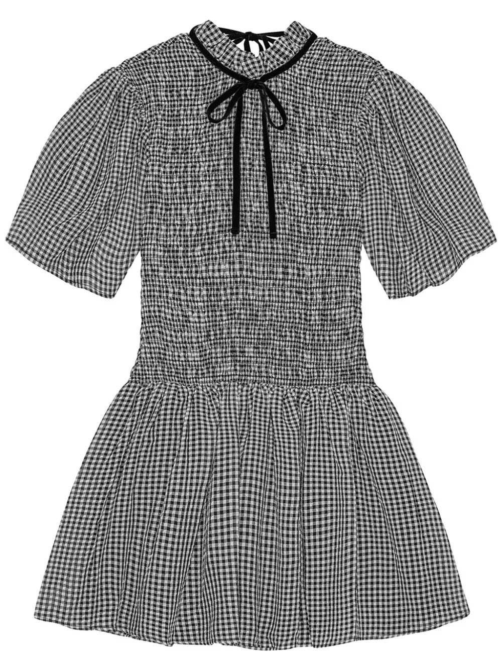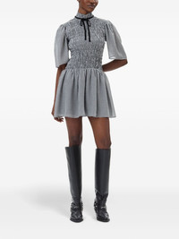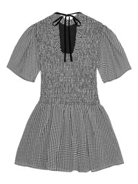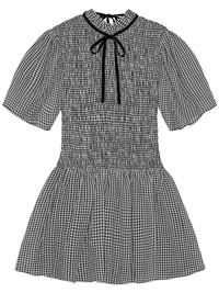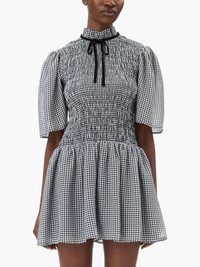 checked mini dress Highlights - Black - Recycled polyester - Check pattern - Smocked panel - Self-tie fastening - Short sleeves - Rear tie fastening - Flared hem - Thigh-length Imported Composition Recycled Polyester 100% Washing instructions Read Manufacturer Guidelines