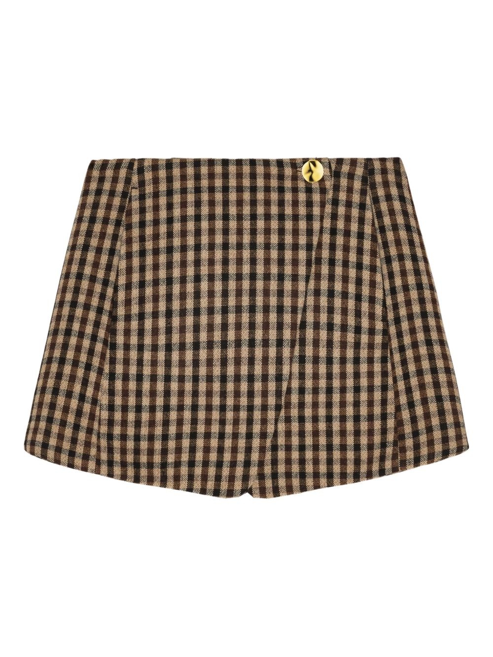 checked mini skirt Highlights - Beige - Side button fastening - Wraparound style - A-line - Thigh-length Imported Composition Fabric 100% Washing instructions Read Manufacturer Guidelines