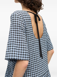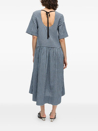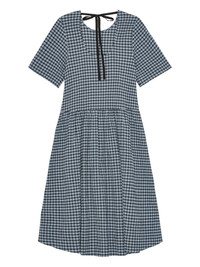 checked seersucker midi dress Highlights - Cornflower blue - Self-tie fastening - Round neck - Short sleeves - Drop waist Imported Composition Organic Cotton 61%, Recycled Polyester 38%, Elastane 1%
