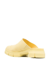 City chunky-sole mules Highlights - City chunky-sole mules from ganni featuring lemon yellow, recycled rubber, logo patch to the side, round toe, slip-on style and ridged rubber sole. . Imported Composition Outer: Recycled Rubber 100% Lining: Fabric 100% Sole: Recycled Rubber 100% SIZE & FIT Measurement HEEL 1.96 in(5 cm) Sole height 0.98 in(2.5 cm)