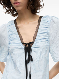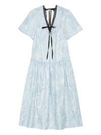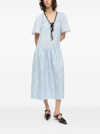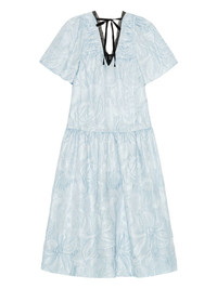 cloque midi dress Highlights - Light blue - Self-tie fastening - V-neck - Drop waist - Short sleeves Imported Composition Outer: Recycled Polyester 52%, Polyester 30%, Nylon 18% Lining: Recycled Polyester 100%