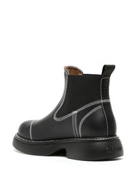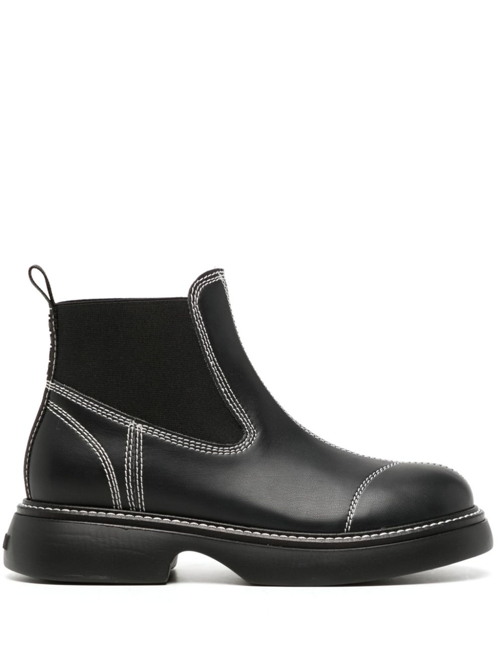 contrast-stitching leather boots Highlights - Black - Calf leather - Contrast stitching - Pull-tab at the heel - Round toe - Elasticated side panels - Slip-on style - Branded insole - Flat rubber sole Imported Composition Cotton 100% SIZE & FIT Measurement HEEL 1.18 in(3 cm) HEIGHT 4.33 in(11 cm) Sole height 0.78 in(2 cm)