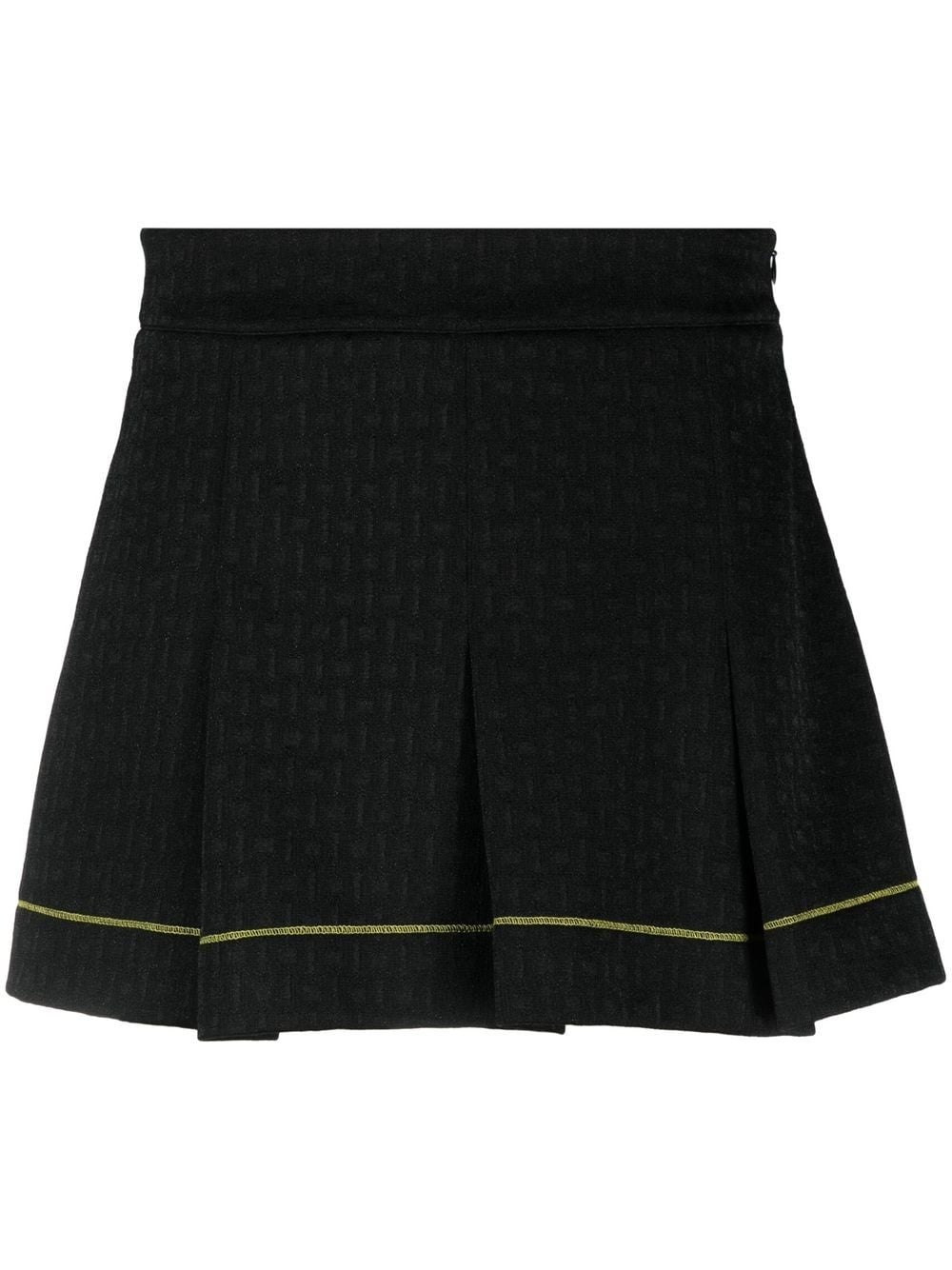 contrast-trim pleated miniskirt Danish brand GANNI updates the classic A-line silhouette of this miniskirt with a pleated design, trimmed with contrasting embroidery. Highlights - Black - Cotton blend - Fully pleated Imported Composition Recycled Polyester 52%, Cotton 23%, Polyester 23%, Spandex/Elastane 2% SIZE & FIT Model measurements Height 5 ft 10 in(1.79 m) Bust/Chest 31.49 in(80 cm) Hips 35.03 in(89 cm) Waist 23.62 in(60 cm) FittingInformation This piece fits true to size. We recommend you get your regular size Designed to be fitted at the waist and hips, loose over the leg Made with a mid-weight stretch fabric