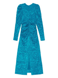 crinckled satin midi dress Highlights - Blue - Recycled polyester - Satin weave - Crinkled finish - Gathered detailing - Round neck - Rear zip fastening - Long puff sleeves - Front slit Imported Composition Recycled Polyester 95%, Elastane 5% SIZE & FIT Measurement SLEEVE LENGTH 25.19 in(64 cm) HIPS 31.88 in(81 cm) LENGTH 46.45 in(118 cm) WAIST 24.8 in(63 cm) Washing instructions Read Manufacturer Guidelines
