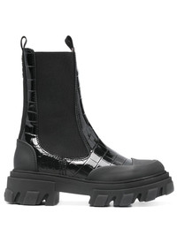 croc-effect Chelsea boots Highlights - Black - Faux leather - Patent finish - Embossed crocodile effect - Slip-on style - Double pull-tab at the opening - Elasticated side panels - Rubber toecap - Round toe - Branded insole - Calf-length - Chunky rubber sole Imported Composition Sole: Rubber 100% Outer: Rubber 100%, Polyurethane 100%, Fabric 100% Lining: Fabric 100%, Polyurethane 100% SIZE & FIT Measurement HEEL 1.96 in(5 cm) HEIGHT 7.87 in(20 cm) Sole height 1.18 in(3 cm)