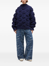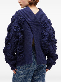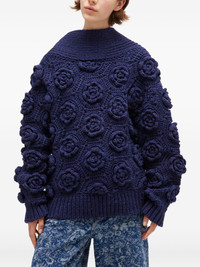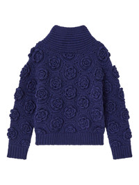 crochet-detail sweater Highlights - Blue - Flower detail - High neck - Open back - Ribbed hem Imported Composition Wool 100% Washing instructions Read Manufacturer Guidelines