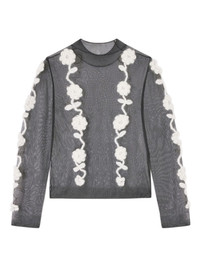 crochet-flowers mesh top Highlights - Black - Sheer mesh - Crochet flower appliques - Long sleeves - Round neck Imported Composition Recycled Polyamide 56%, Mohair 28%, Wool 8%, Polyester 8% Washing instructions Read Manufacturer Guidelines