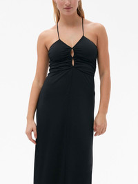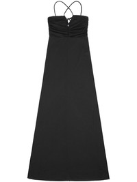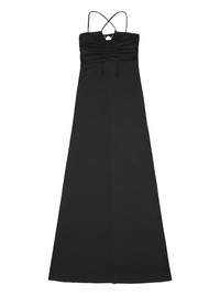 crossover-strap gathered maxi dress GANNI steps away from its usual cheerful patterns and bold to introduce this maxi dress. In a black colourway, it is defined by its crossover straps and gathered front. Highlights - Black - Recycled polyester blend - Crossover shoulder straps - Gathered detailing - Flared - Straight hem - Maxi Imported Composition Recycled Polyester 94%, Elastane 6%