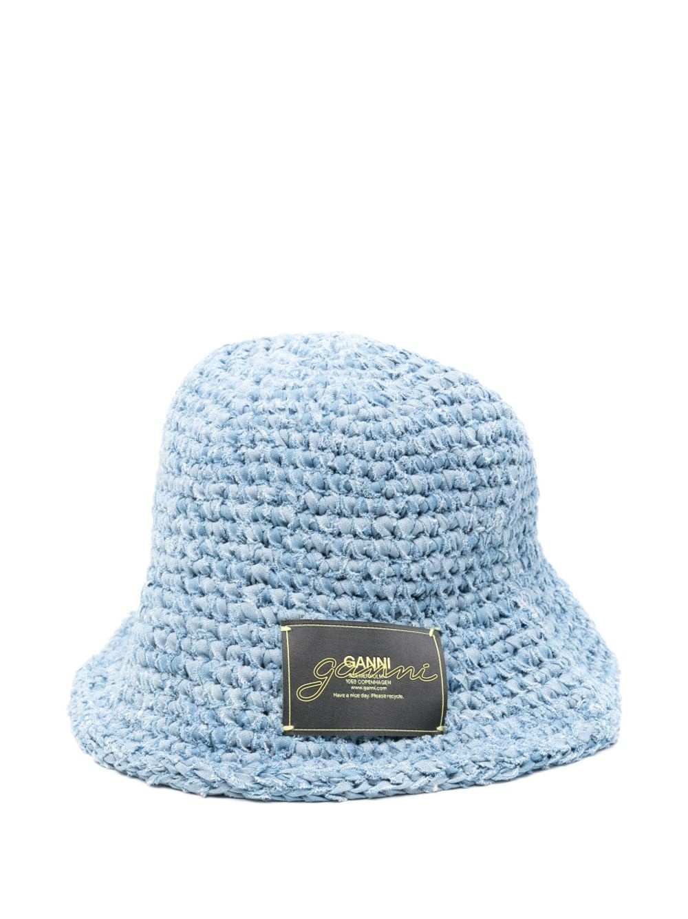 Denim Handknit bucket hat Highlights - Cerulean blue - Flat crown - Logo patch to the front - Dropped narrow brim Imported Composition Organic Cotton 100% SIZE & FIT Measurement CIRCUMFERENCE 21.65 in(55 cm) Washing instructions Hand Wash
