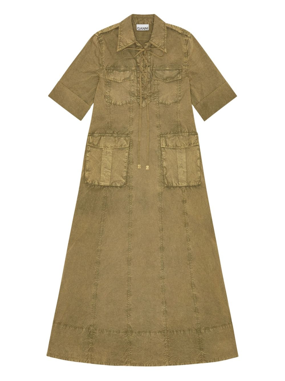 denim midi dress Highlights - Green - Front tie fastening - Two side cargo pockets - Short sleeves Imported Composition Fabric 100% Washing instructions Read Manufacturer Guidelines