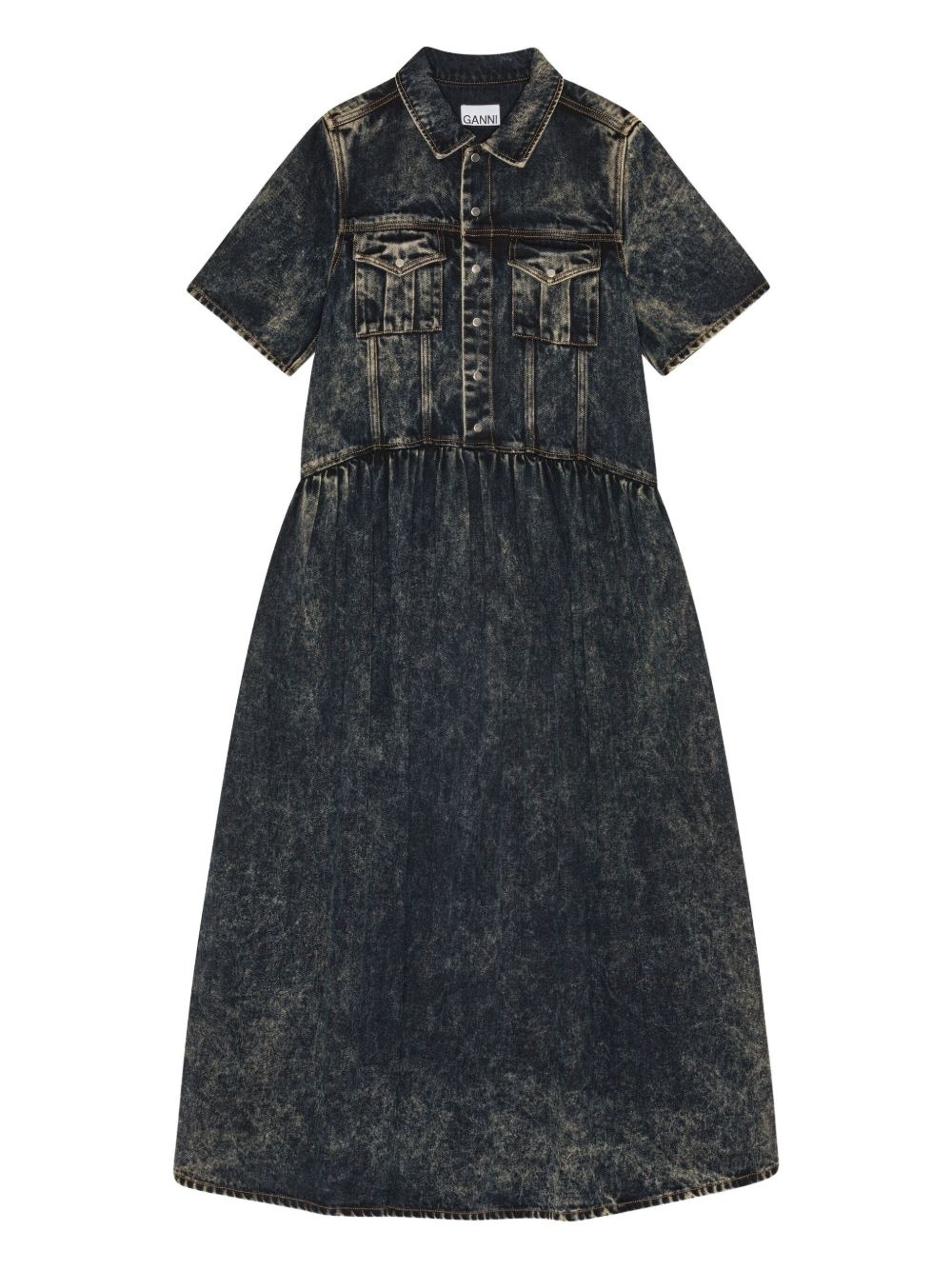 denim midi dress Highlights - Indigo blue - Front press-stud fastening - Two chest flap pockets - Two side inset pockets - Short sleeves Imported Composition Fabric 100%
