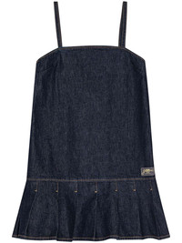 denim mini dress Highlights - Indigo blue - Organic cotton - Denim - Slip-on style - Thin shoulder straps - Sleeveless - Square neck - Contrast stitching - Embroidered logo to the rear - Pleated skirt - Straight hem - Thigh-length Imported Composition Organic Cotton 100%