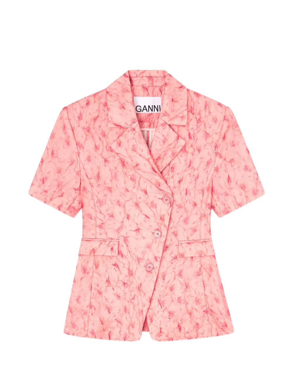 double-breasted short-sleeve jacket Highlights - Pink - All-over pattern - Notched lapels - Double-breasted button fastening - Short sleeves - Flap pockets Imported Composition Fabric 100% Washing instructions Read Manufacturer Guidelines