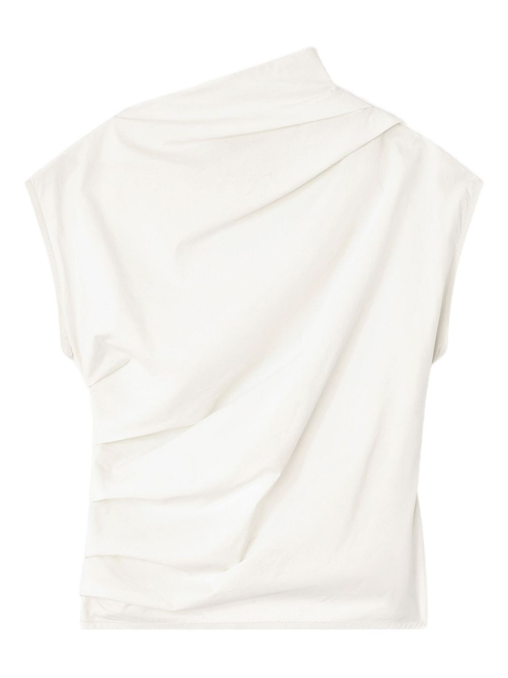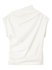 draped cowl-neck top Highlights - Off-white - Cowl neck - Draped design - Short sleeves - Open back - Asymmetrical hem Imported Composition Recycled Cotton 97%, Elastane 3% Washing instructions Read Manufacturer Guidelines