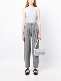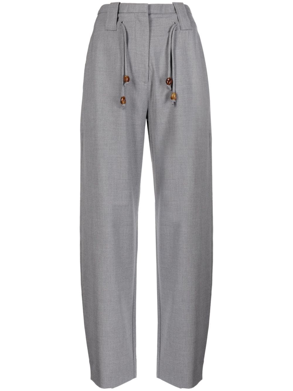 drawstring-waist straight-leg trousers Highlights - Light grey - Concealed front fastening - Drawstring fastening waist - Straight leg - Two side slit pockets - Rear welt pocket Imported Composition Viscose 48%, Polyester 47%, Elastane 5% Washing instructions Machine Wash