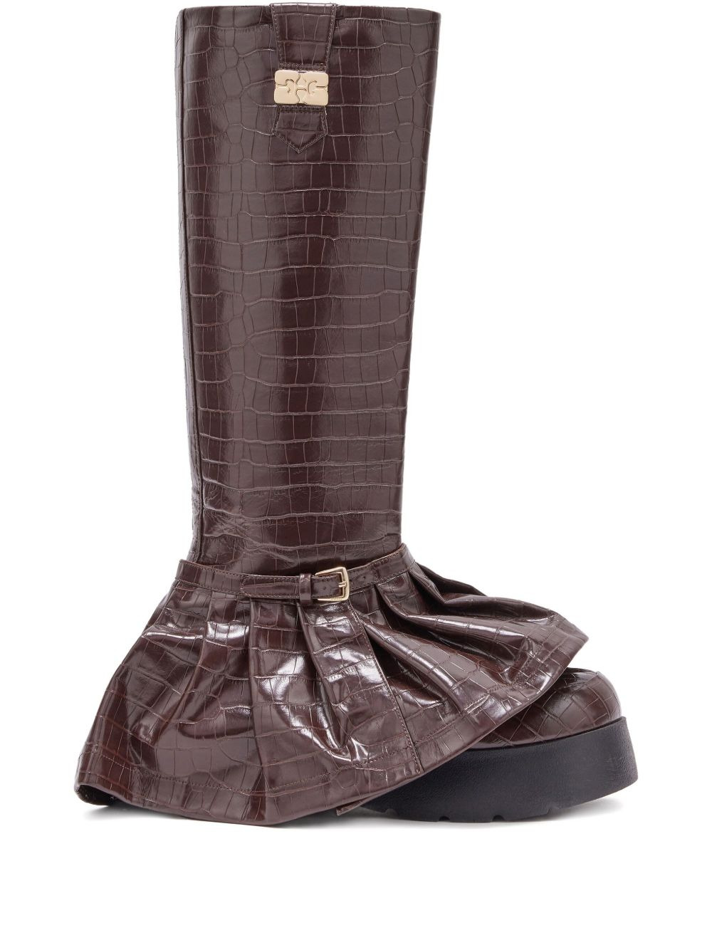embossed boots Highlights - Burgundy - Gold-tone hardware - Almond toe Imported Composition Sole: Rubber 100% Outer: Polyurethane 100% Lining: Polyurethane 100%