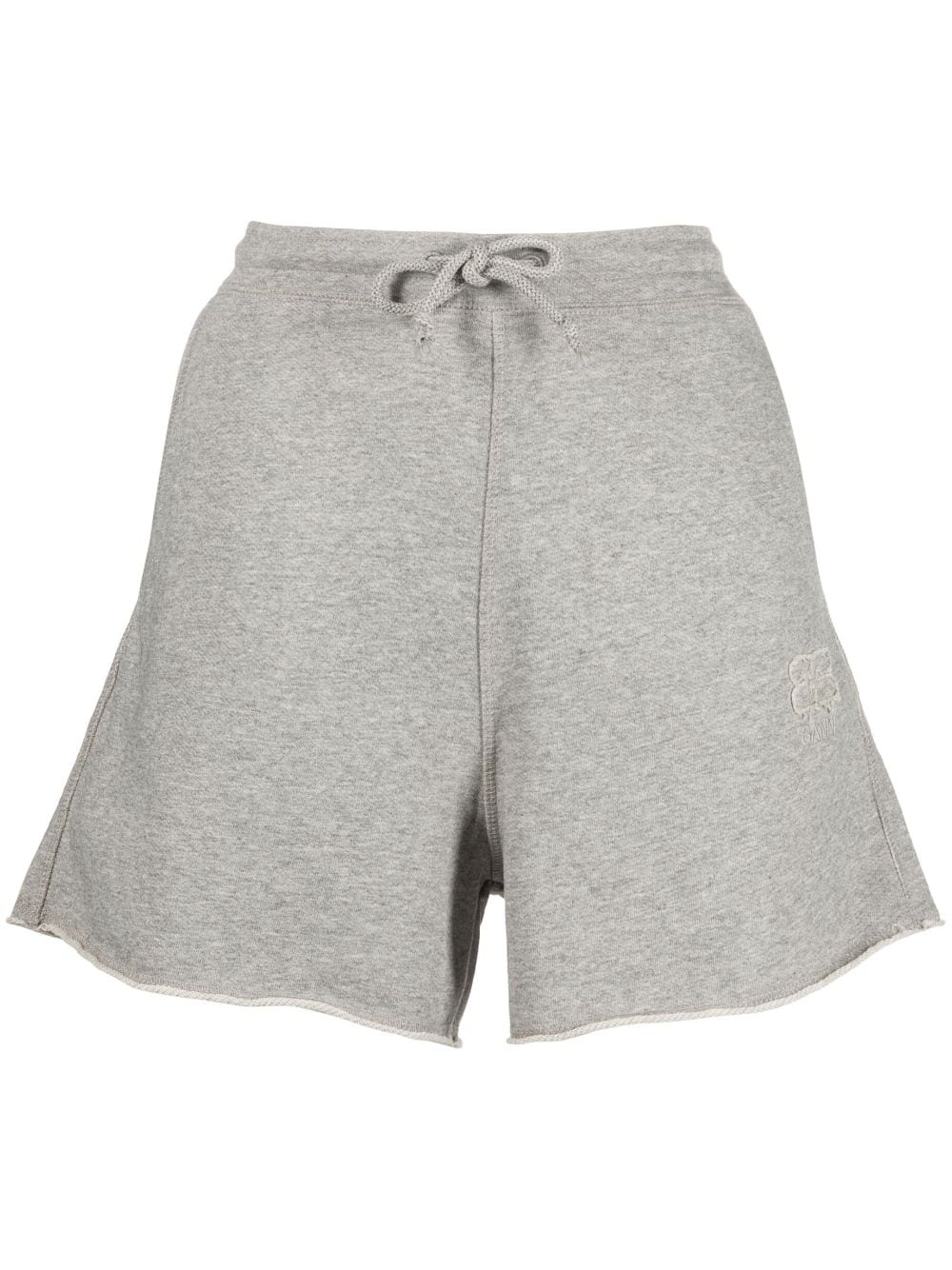 embroidered-logo drawstring shorts In a constant quest for sustainable fabrics and practices, GANNI delivers these track shorts crafted with organic cotton. They feature an elasticated waistband with drawstring fastening and end at the mid-thighs in a raw-edge hem. Highlights - Light grey - Organic cotton - Embroidered logo to the side - Elasticated drawstring waistband - Raw-cut hem - Thigh-length Imported Composition Organic Cotton 100% SIZE & FIT Model measurements Height 5 ft 10 in(1.77 m) Bust/Chest 31.49 in(80 cm) Hips 35.03 in(89 cm) Waist 23.22 in(59 cm) FittingInformation Designed for a relaxed, roomy fit Adjust this piece’s waistband to your preference using the drawstring Made from a midweight non-stretch fabric, this piece offers minimal elasticity when worn This piece fits true to size – take your usual size Washing instructions Machine Wash