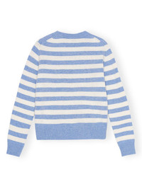 embroidered long sleeve jumper Highlights - Blue - Pinstripe pattern - Ribbed band collar - Long sleeves - Embroidered logo to the front - Ribbed cuffs and hem Imported Composition Wool 44%, Recycled Wool 34%, Recycled Polyamide 19%, Polyester 2%, Polyamide 1%