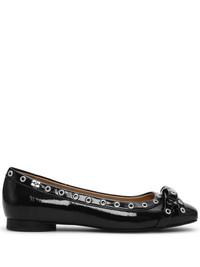 eyelet-detail bow ballerina shoes Highlights - Black - Calf leather - Patent finish - Eyelet detailing - Bow detailing - Square toe - Branded insole - Flat sole - Slip-on style Imported Composition Cotton 100%
