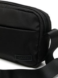 Festival logo-patch crossbody bag Ganni showcases its commitment to sustainable design with the Festival crossbody bag, crafted from recycled polyester. Imagined in a versatile black hue, the accessory is adorned with a tonal logo patch for a signature touch. Highlights - Black - Recycled polyester - Logo patch to the front - Front zip-fastening pocket - Top zip fastening - Main compartment - Adjustable shoulder strap Imported Composition Outer: Recycled Polyester 100% SIZE & FIT Model measurements Height 5 ft 10 in(1.77 m) Bust/Chest 31.49 in(80 cm) Hips 35.43 in(90 cm) Waist 25.19 in(64 cm) Measurement DEPTH 1.96 in(5 cm) HEIGHT 6.29 in(16 cm) STRAP 8.66 in(22 cm) WIDTH 9.84 in(25 cm)