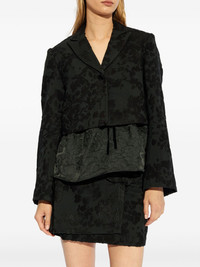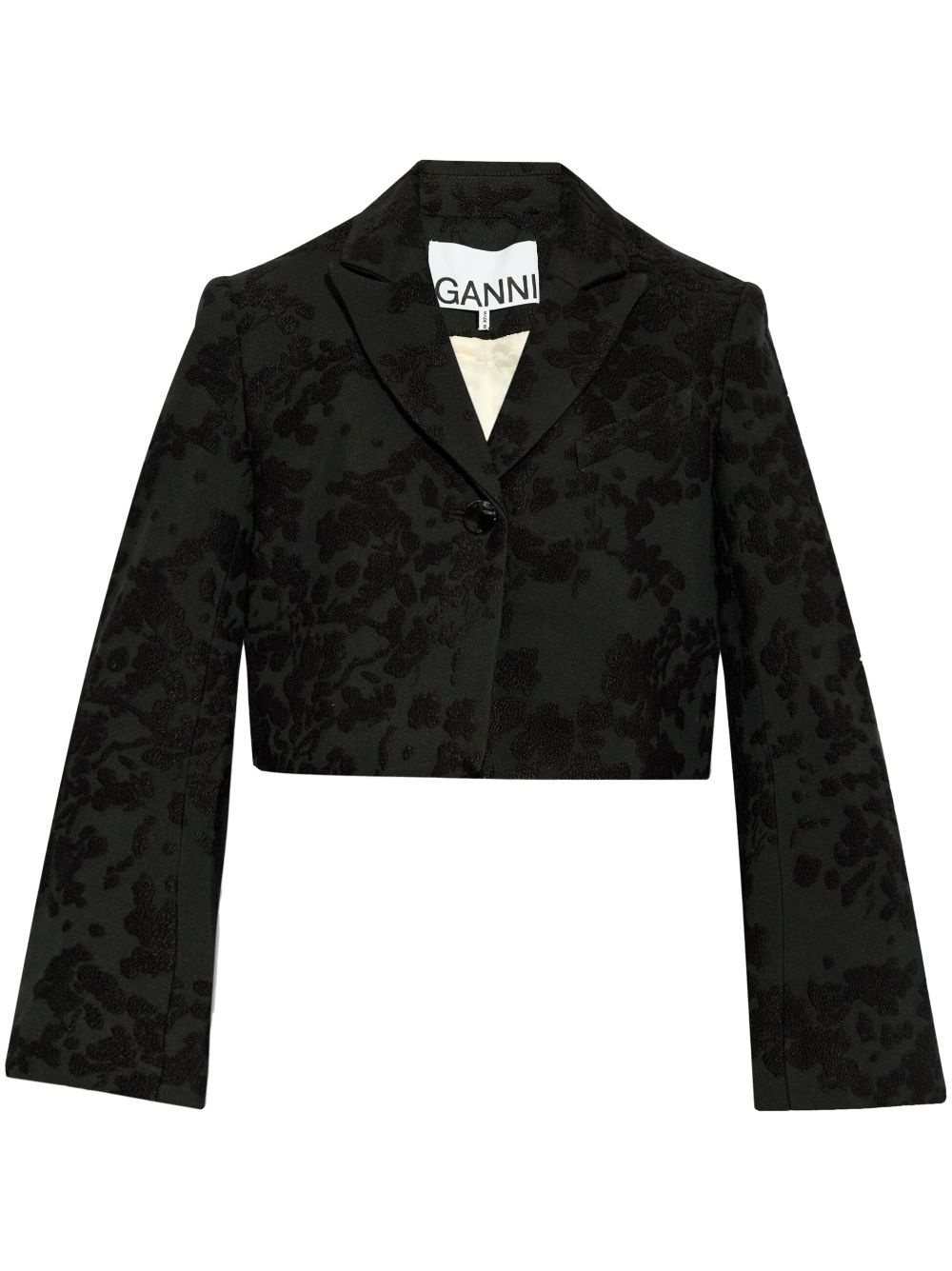 floral-embroidered cropped blazer Highlights - Black - Twill weave - All-over floral embroidery - Notched lapels - Front button fastening - Long wide sleeves - Cropped - Straight hem Imported Composition Acrylic 50%, Polyamide 25%, Polyester 25% Washing instructions Read Manufacturer Guidelines