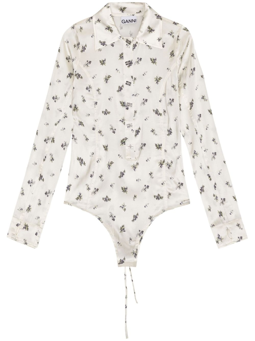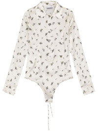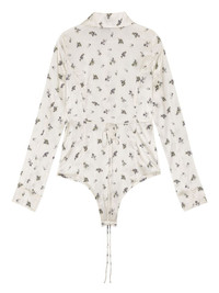 floral-print bodysuit Highlights - White - Front button placket - Rear lace-up fastening - Satin finish - Classic collar - Just a reminder that this piece must be tried on over your own garments. Imported Composition Fabric 100%