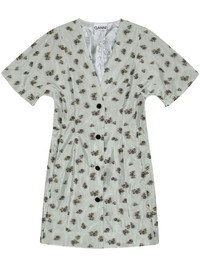 floral print buttoned minidress Highlights - Acqua foam - Recycled polyester blend - Floral print - V-neck - Front button fastening - Short sleeves - Thigh-length - Full lining Imported Composition Recycled Polyester 52%, Polyester 48%