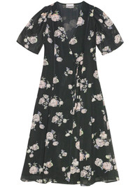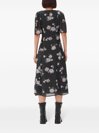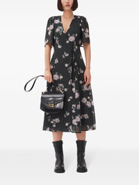 BLACK FLORAL CREPE WRAP MIDI DRESS