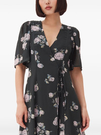 floral-print crepe wrap midi dress Highlights - Black/multicolour - Crepe texture - Ivy print - V-neck - Multiple front tie fastening - Half-length sleeves - Flared skirt - Mid-length Imported Composition Viscose 100%