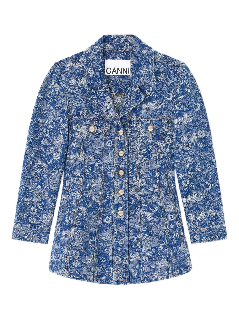 floral-print denim jacket Highlights - Blue - Floral print - Button fastening - Collared neckline Imported Composition Fabric 100% Washing instructions Read Manufacturer Guidelines